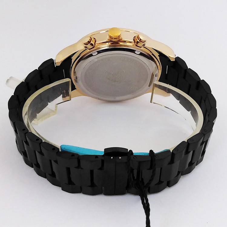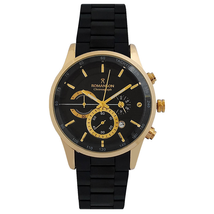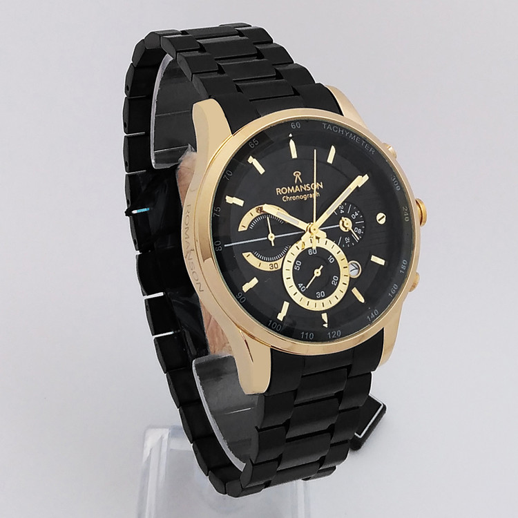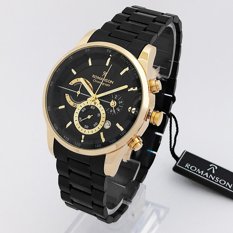 رومانسون ساعت مردانه مشکی طلایی مردانه سه موتور کرنوگراف تاریخ دار ضدآب بندفلزیROMANSON ارسال رایگان کادو کپی