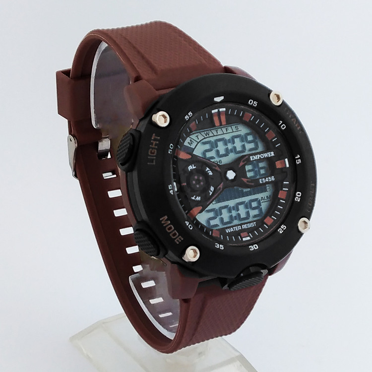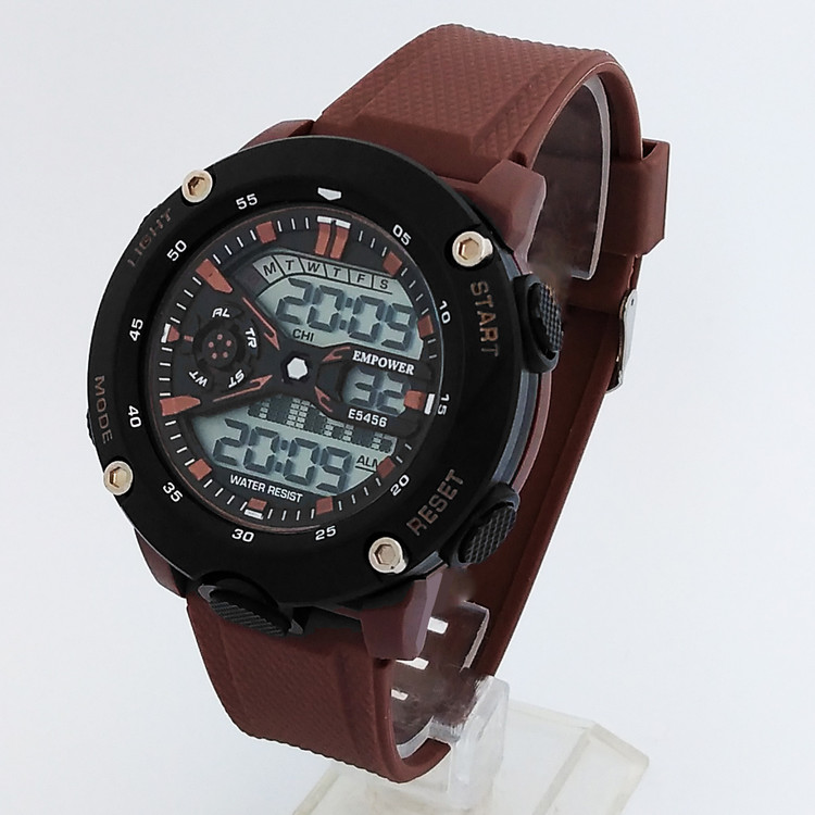 ساعت مشکی قهوه ای امپاور EMPOWER اسپرت ضدآب و ضدضربه کرنومتر آلارم ارسال رایگان چراغدار چراغ هفت رنگ دودیجیتال