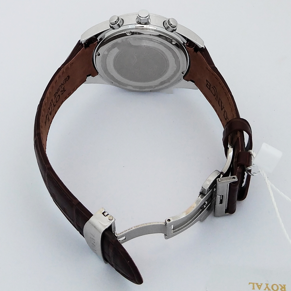 ساعت بندچرمی کرنوگراف الگانس سه موتوره مچی مردانه اسپرت نقره ای SPORT قهوه ایELEGANCE ضدآب سه موتور فعال فول تایم رویال بندچرمی